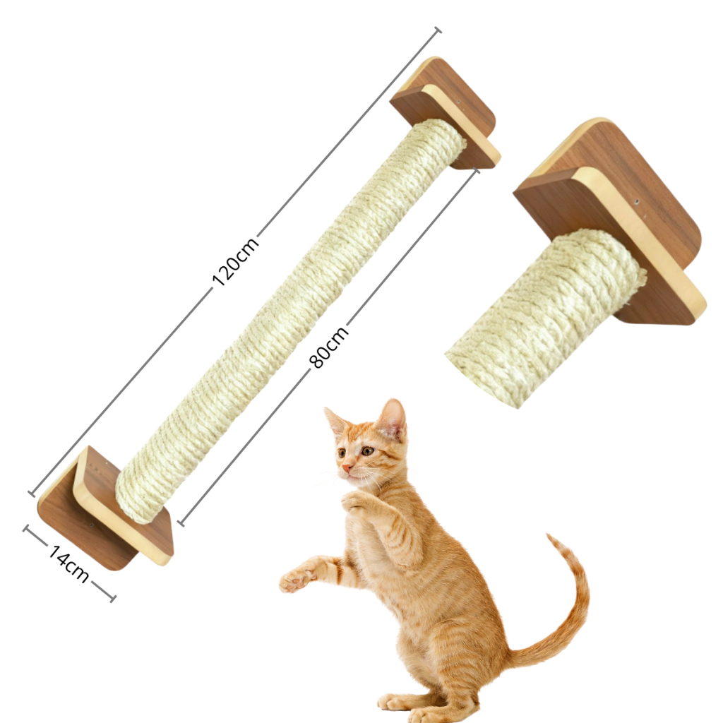 A fixação com parafusos reforçados garante firmeza absoluta, permitindo que o gato use para arranhar, caminhar ou descansar sem risco de movimento. O acabamento laminado nas cores branco, preto ou marrom mantém o cuidado estético, oferecendo uma peça moderna e alinhada ao visual da casa. O sisal natural de 8mm traz resistência superior e atende ao instinto de arranhar com mais conforto e durabilidade.